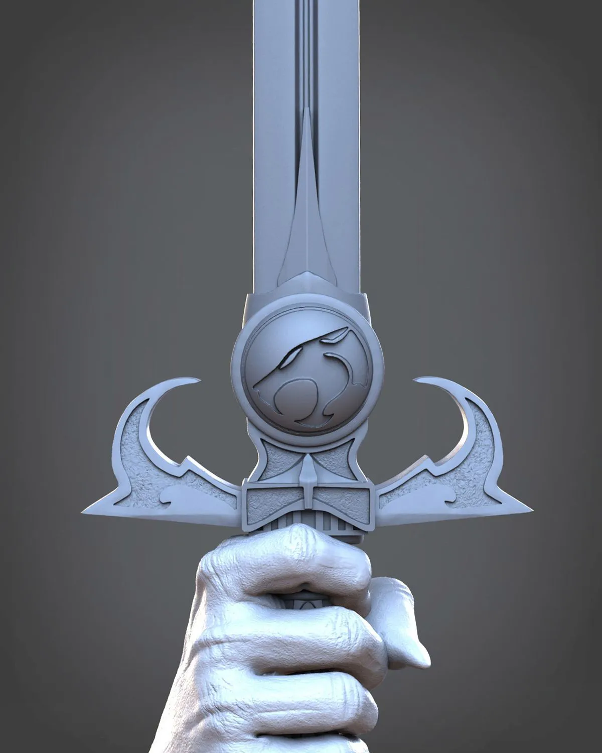 - Pose: Heroic stance wielding the Sword of Omens