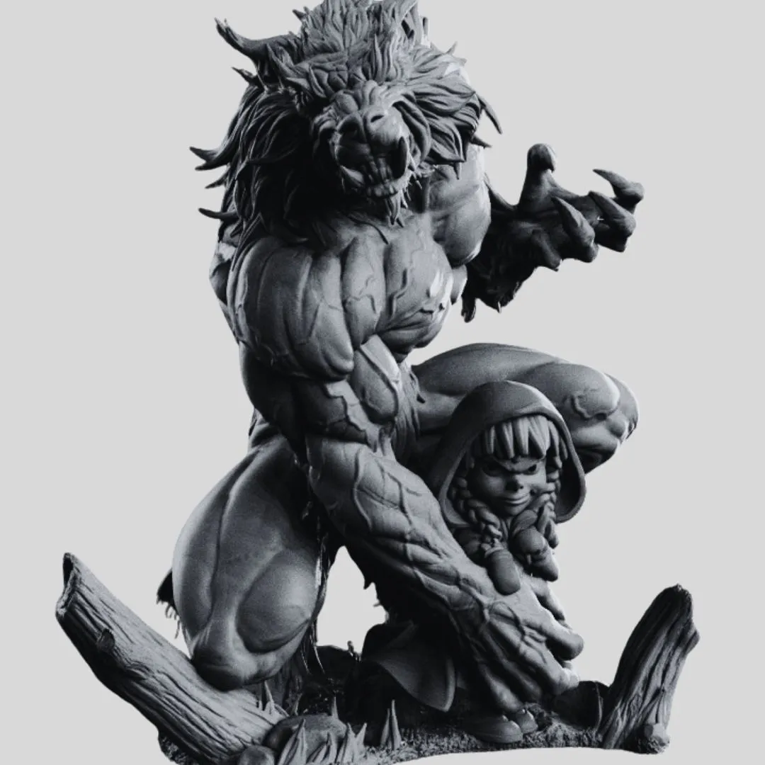 Little Red Riding Hood & Her Giant Wolf Protector – 3D Model (Unpainted Gray Edition)
