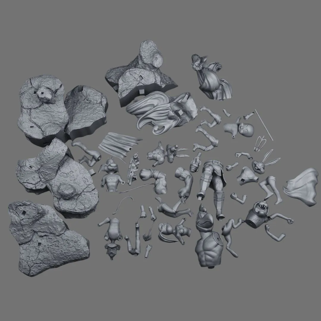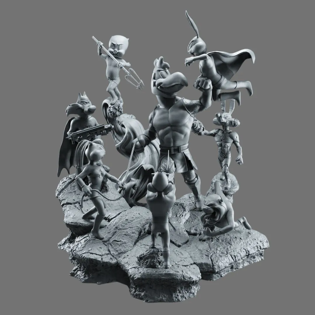 Looney Tunes DC Superheros Diorama – 3D Model (Unpainted Gray Edition)