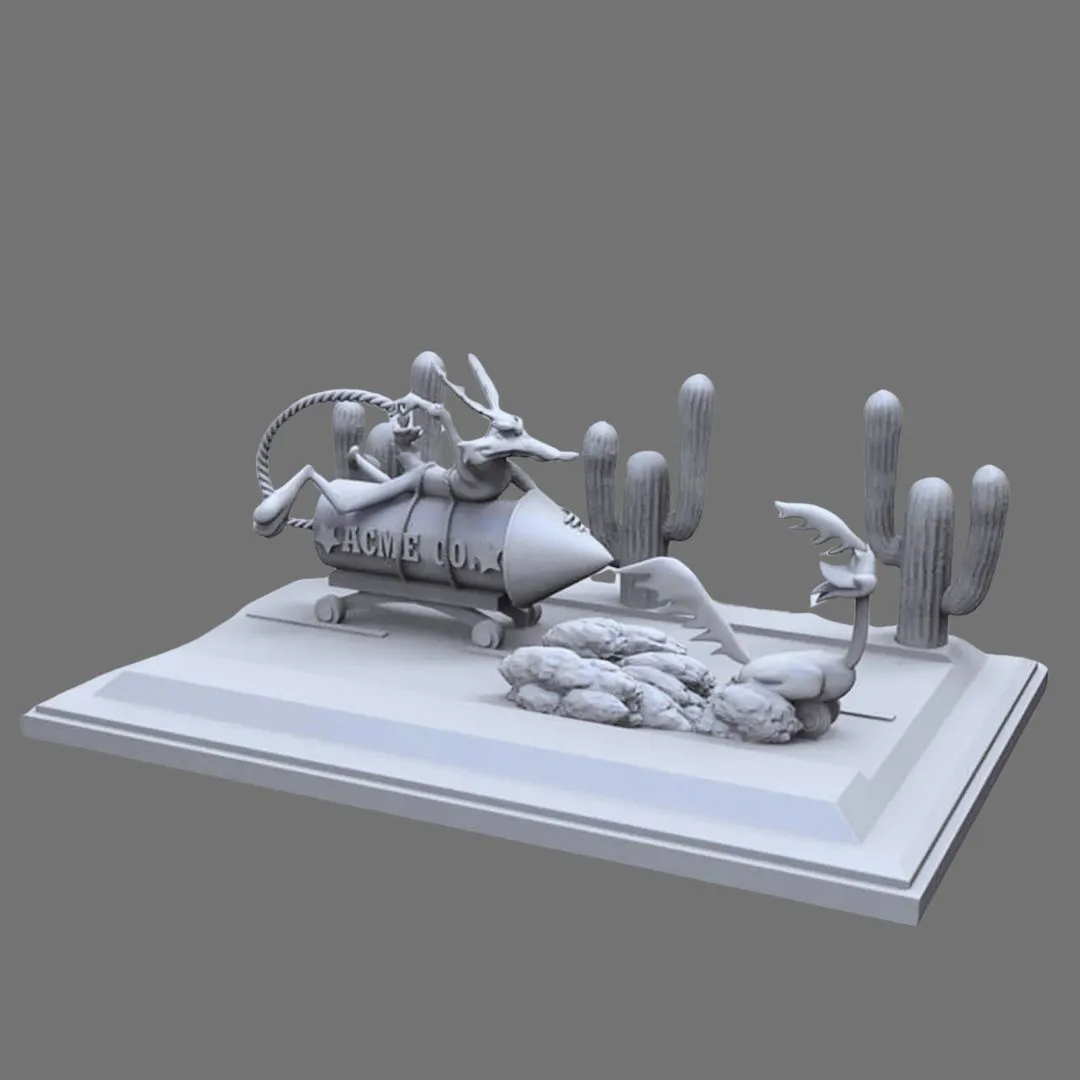 Beep Beep! The Chase is yours! The ultimate chase comes to life! This unpainted Gray 3D diorama is perfect for collectors and hobbyists to paint, customize, and display.